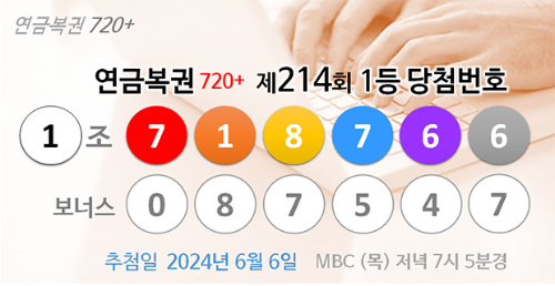 214회 연금복권 720+의 당첨번호는 6월 6일에 발표되었습니다. 1등 당첨번호는 1조 718766 조합으로 추첨되었으며, 보너스 번호는 087547 조합으로 나왔습니다.