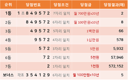 아래와 같은 당첨결과가 발표 되었고, 아래 보고서는 연금720+앱에서 보실 수 있습니다.