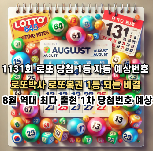 1131회 로또 1등 자동 예상번호, 8월 역대 출현 패턴과 로또645 앱의 당첨 비결에 대해 깊이 있게 알아보려고 해요. 역대 로또 1등 당첨번호 목록부터 시작해 지난주 1130회 로또번호, 그리고 로또 제1131회 천기누설까지 다룰 예정이에요.