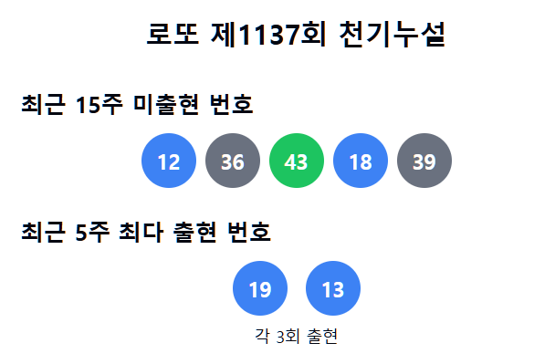 - 43번: 15주 연속 미출현이지만 역대 3위 출현 빈도를 가진 번호