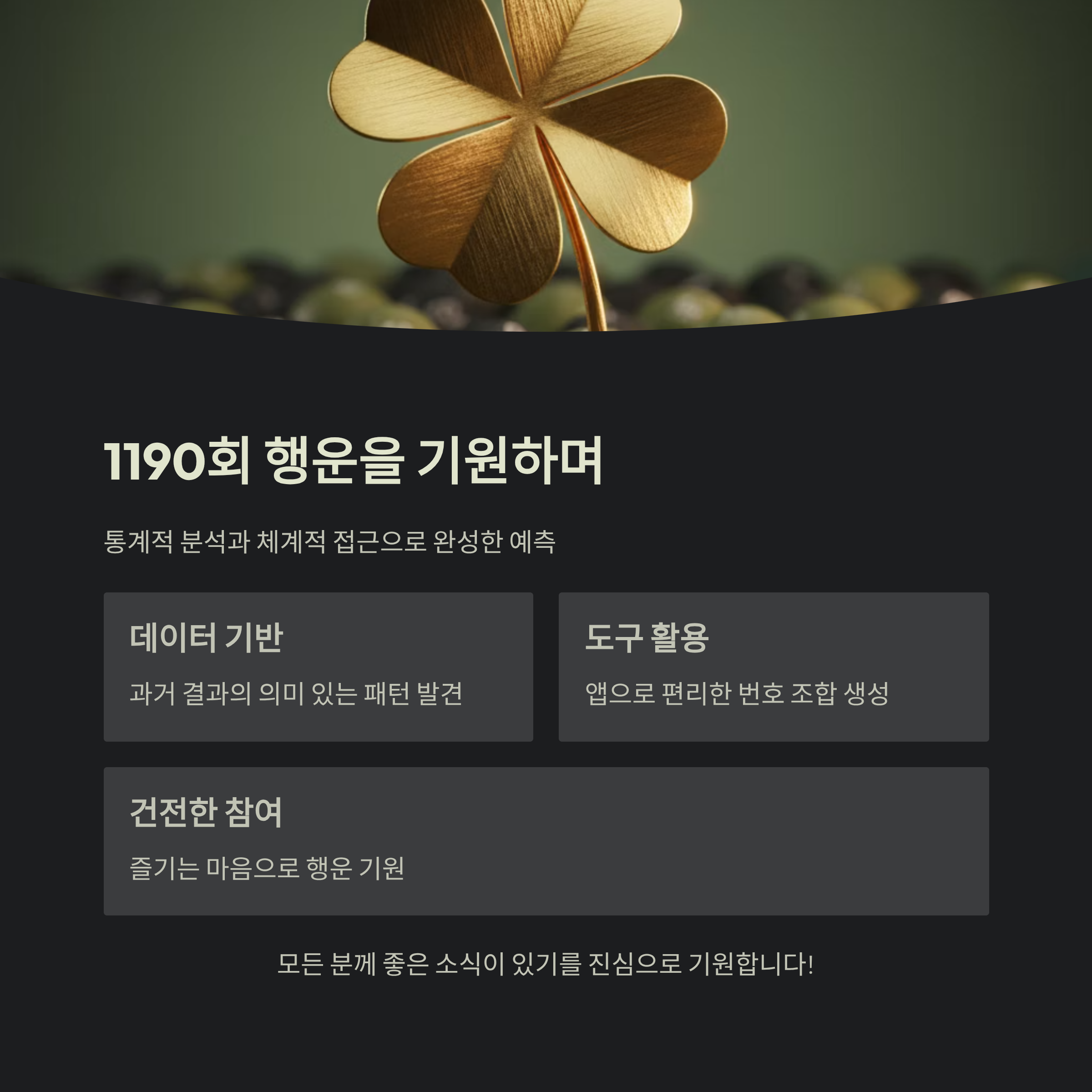 이 글에서 제시된 분석 내용과 방법들이 여러분 각자의 번호를 찾아가는 여정에 작은 도움이 되기를 바랍니다. 1190회차에서 모두에게 좋은 소식이 있기를 진심으로 기원합니다.