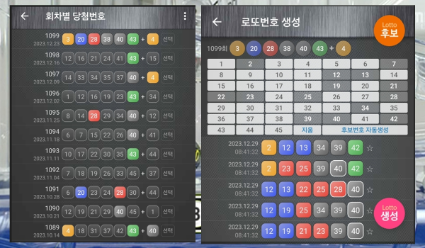 로또번호 통계 자료와 회차별 당첨번호 자료가 마음에 들기 때문이고, 로또번호 생성할 때 후보번호를 내 생각을 반영하여 수신할 수 있다는 것입니다.